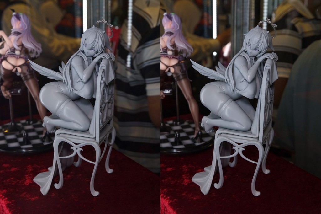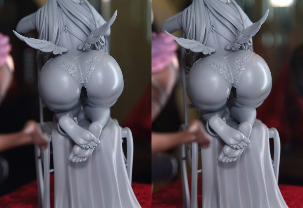 「純白のエンジェルちゃん」1/6スケールフィギュアの監修中の原型を展示中!原画:Sueスーエ(@Suertee34)